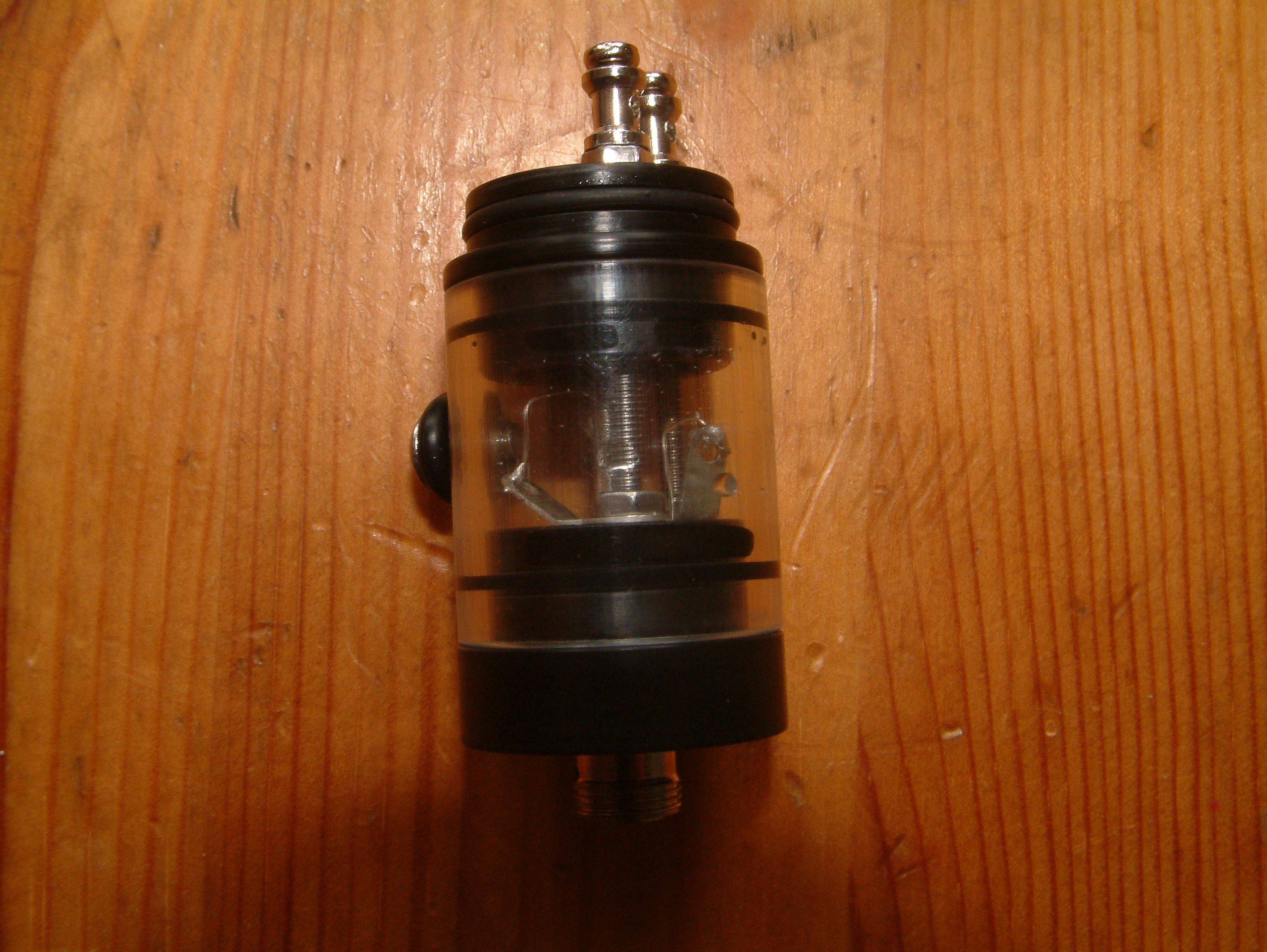 Das war vielleicht ein Fest, den in Betrieb zu nehmen. Heutzutage würde ich das Wickeln vielleicht ein- oder zweimal versuchen und den Verdampfer dann gegen die Wand werfen (da sich der Tank nicht öffnen ließ, war es nicht möglich die Glasfaser-Dochte dort hineinzuziehen… nein, man musste die anspitzen und die labbrigen Dinger durch die wirklich kleinen Bohrungen vom Deck in den Tank schieben… da hatte man zeitweise echt blutunterlaufene Augen und Schaum vor dem Mund), aber damals war das halt ein neues Verdampfer-Prinzip und man war ohnehin froh, einen Selbstwickler zu haben.
