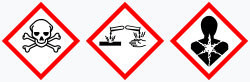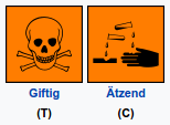 Weil das Zeug also recht brisant ist, gibt es auch einen netten Strauß an H- und P-Sätzen dafür (also Maßnahmen, zum Schutz): H: 301+311+331​‐​314​‐​317​‐​335​‐​341​‐​350​‐​370 / P: 201​‐​260​‐​280​‐​301+310​‐​330​‐​303+361+353​‐​304+340​‐​310​‐​305+351+338​‐​308+310​‐​403+233 und auf dem Pülleken (oder Kanistern oder Tanks oder Sonstewas) sind Gefahrstoffkennzeichen festgelegt… nämlich diese hier: