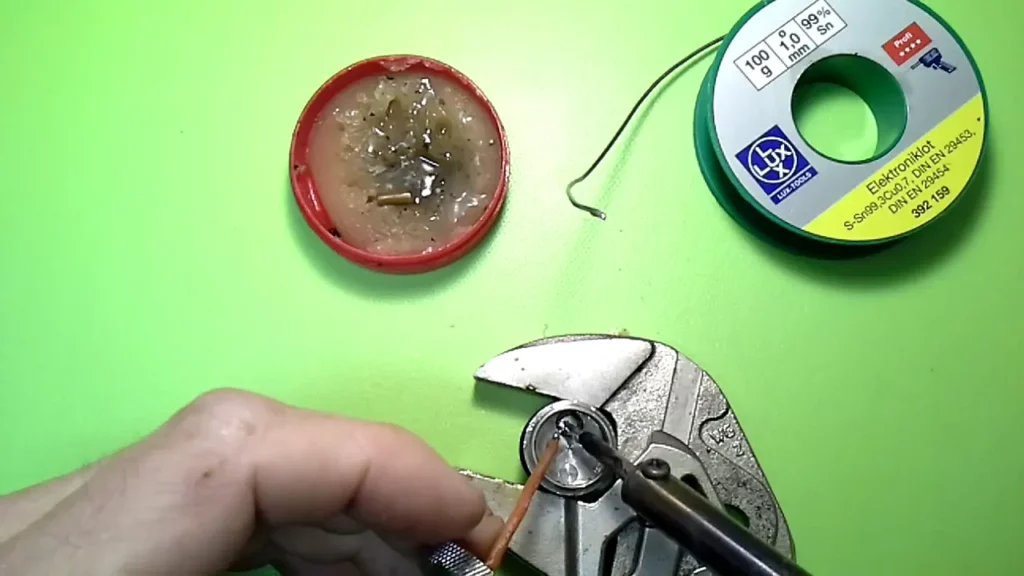 Nun wird man, sofern man Kabelprobleme hatte sehen können, dass sich das Kabel an irgend einer Stelle gelöst hat oder anders beschädigt ist (unwahrscheinlich). Wenn man lediglich das Kabel wieder anlöten möchte, braucht man einen Lötkolben mit ausreichend Leistung, weil die zu verlötenden Teile schon recht massiv sind und viel Energie „schlucken“. Der Einsatz von Lötfett (das wird immer als „veraltet“ beschimpft… ich habe festgestellt, dass es gerade bei solchen Aufgaben die Arbeit wirklich erleichtern kann) kann durchaus sinnvoll sein.