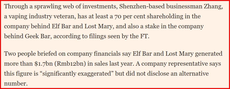 Heavengifts gehören die Marken Elfbar, Lost Mary, Found Mary, Geekbar, Geekvape und weitere Marken. Der größte Anteilseigner ist zugleich auch der Geschäftsführer Shengwai Zhang.