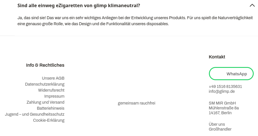 Sind alle einweg eZigaretten von glimp klimaneutral?