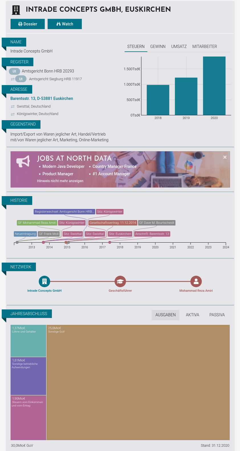 Geschäftsführer von Intrade Concepts ist Mohammad Reza Amiri.