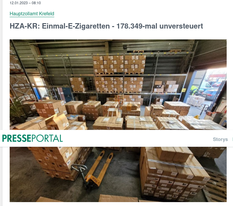Es scheint ein branchenimmanentes Problem der „illegalen“ Einweg E-Zigaretten auf dem inländischen E-Zigaretten Markt zu geben. Der bisher größte Fund wurde vom Krefelder Hauptzollamt mit mehr als 178.000 illegalen Einweg E-Zigaretten bei einem Großhändler in Moers sichergestellt. Die Vertriebswege, die diese Produkte schon auf deutschen Boden landen ließen, sind schlichtweg illegal und sie haben auf deutschem Boden einfach nichts zu suchen. „Aus Versehen“ geschieht sowas auch nicht. British American Tobacco (Mitglied im VdeH) hat laut verschiedenen Medien zwischen den Jahren 2007 und 2017 rechtswidrig Tabakprodukte an Nordkorea verkauft und dafür eine Rekordstrafe von über einer halben Milliarde bezahlen.
