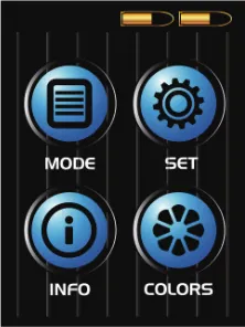 Ein Dreifachklick am Feuertaster öffnet das Menü. Hier kann zwischen den Betriebsmodi gewählt werden: Leistung (Watt), TC (Ni, Ti, SS316) und TCR. Außerdem kann hier die Zeitanzeige auf dem Display gewählt werden (analog / digital).
