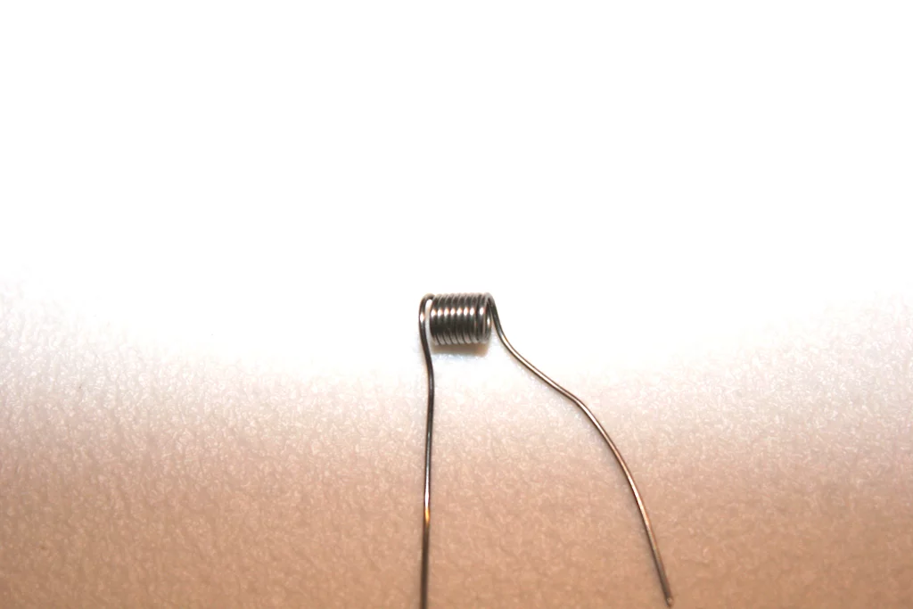 Hat man das nun vollbracht, kann man (je nach Modell und auch nach Vorliebe) die Madenschraube lösen und die Wickelhilfe samt Wicklung aus der Basis ziehen oder man zieht die Wicklung einzeln von der Wickelhilfe. Wenn das Ergebnis nicht zufriedenstellend ist, muss man seine Technik ein wenig anpassen. Macht man alles richtig, so erhält man eine perfekte und schon schön eng liegende Microcoil. Liegen die Windungen nicht ordentlich dicht beieinander, so hat man beim Drehen zu wenig Druck ausgeübt, liegen die Windungen teilweise übereinander, so hat man zu stark gedrückt. Den Bogen hat man aber nach wenigen Versuchen heraus und so dauert die Herstellung einer Microcoil wirklich nur wenige Minuten.