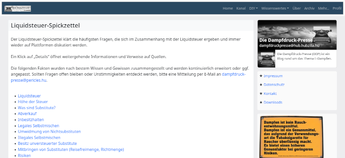 Die Serien und Ratgeber (Koffein, Fasern, Tabak- und andere Extrakte, Hardware, Selbstwickeln, Selbstmischen, Aromen, Keulkulator, Liquidsteuer-Spickzettel) sind bereits komplett übernommen.