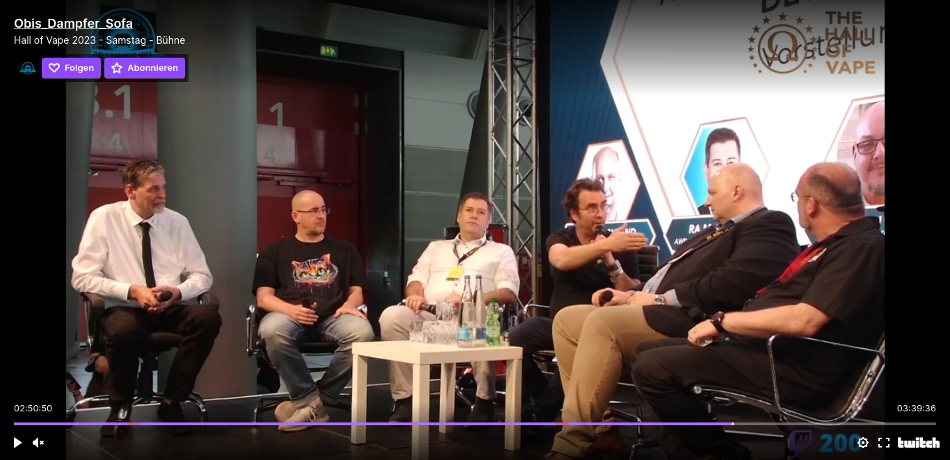 Wie der Moderator Dirk Oberhaus (BVRA Beiratsmitglied) immer noch darauf hinwies, dass der Fachhandel zu 99,9 % korrekt im Bezug auf Einweg E-Zigaretten ist und so eine realitätsfernen Blickwinkel auf das Thema einnehmen kann, während er auf der Hall of Vape sitzt (das ist auch Fachhandel und Point of Sale für Endkonsumenten und keine „Geheimbund Veranstaltung“) und der Zoll wagenweise Stände leergeräumt hat, ist sehr fragwürdig. Auch wie er in Frage stellen kann, ob es die Aufgabe der Branche ist, den Markt sicher zu halten, zeigt einen dürftigen Kenntnisstand nach mehreren Jahren Tabakerzeugnisgesetz. Dirk Oberhaus hat als Moderator – wenig überraschend – verpasst, Oliver Pohland zu fragen, welche Anstrengungen denn die nicht konformen Produkte betreffend vom Verband konkret unternommen wurden. Der Kassenwart Markus Ense war immer noch mit der Steuer befasst. Das Thema kann sich in voller Länge auf Obis Dampfer Sofa auf Twitch angesehen werden. Zu Produktsicherheit, Einweg E-Zigaretten gab es spärliche Aussagen. Druck auf die Einweg Branche sieht leider völlig anders aus.
