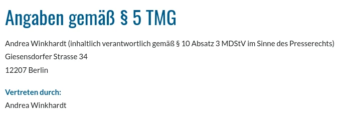 Und tatsächlich, schaut man auf der Webseite der Garage ins Impressum (arch), wird als ViSdP besagte Frau Winkhardt aufgeführt.