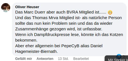 „Und das Thomas Mrva Mitglied ist- als natürliche Person sollte das nun kein Problem sein und das da wieder Zusammenhänge gezogen wird, ist unfassbar.“