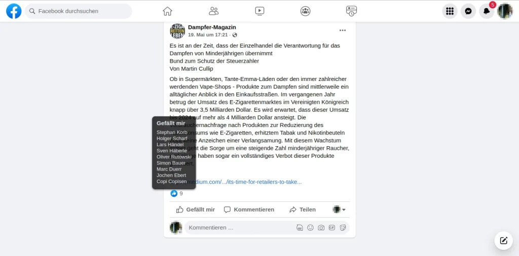 Was mich aber überrascht hat, war die Liste derer, die auf der Dampfer-Magazin Facebook-Seite zu dem Artikel ein „Like“ hinterlassen haben. Aber seht selbst: