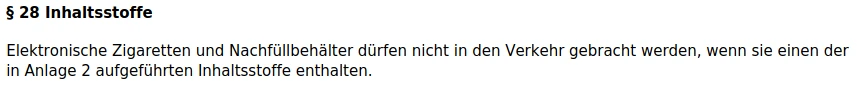 Jetzt muss man noch speziell den Punkt Diacetyl hervorheben: Popcorn Lunge blabla… dazu kennen wir die Details genug, aber: Hat denn dieser Händler und Hersteller immer noch nicht mitbekommen: Diacetyl steht in der Tabakerzeugnisvordnung (TabakerzV) in Paragragraph 28 Anlage 2 und ist somit verboten. Diacetyl ist auch in „geringen Mengen“ verboten.