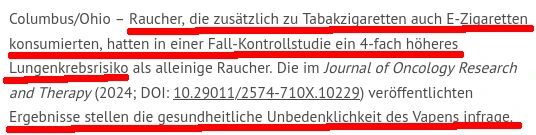 So wie sich alle, die durch jahrelange Anti-Dampf-Propaganda eh der Meinung sind, Dampfen sei wahrscheinlich noch viel schädlicher als Rauchen und sei eine Erfindung der Tabakindustrie um uns alle auszunehmen und letztlich umzubringen, nur die Überschrift der Presseberichte der neuesten Anti-Dampfer-Studien lesen und sich bestätigt fühlen.
