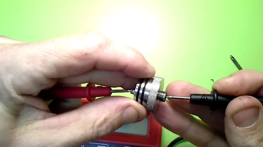 Als Material für den eigentlichen Leiter hat Ron eine 10-Cent-Münze verwendet. Diese besteht aus Messing und wird somit keinen nennenswerten Widerstand im Sockel erzeugen… sicher nicht mehr, sondern vermutlich eher weniger als das Kabel… aber messbar wird das eh mit Hausmitteln nicht sein.