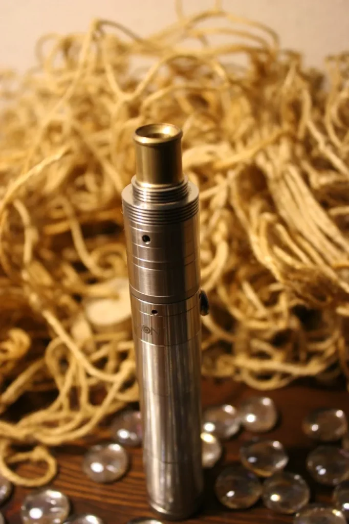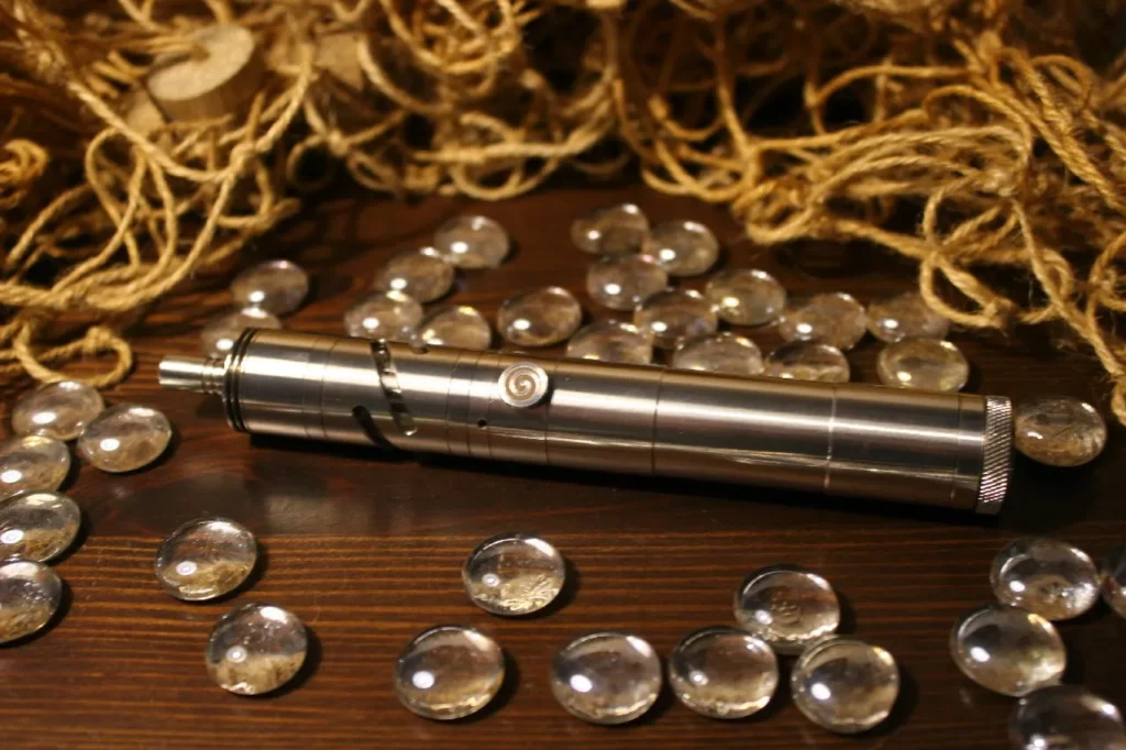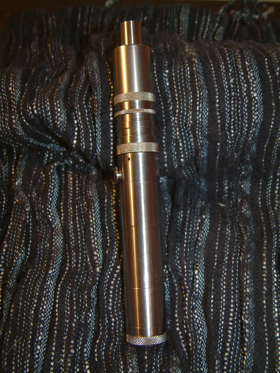 In das Innere der Taster-Einheit ist ein ebenfalls mit O-Ringen gelagertes Kunstoff-Gehäuse eingeschoben, das eine seitliche Bohrung für den Taster-Kontakt und eine vertikale Bohrung für den Pluspol-Pin des Anschlusses aufweist. Der Pluspol besteht aus Kupfer und ist in der Mitte geteilt und elektrisch isoliert. Der obere Teil des Pols, der den Kontakt zum Verdampfer herstellt ist rhodiumbeschichtet, was eine extreme Haltbarkeit gewährleistet und der Bildung von „schwarzen Kontaktstellen“ durch Funkenschlag vorbeugt. Der untere Teil ist hartvergoldet und damit ebenfalls wartungsarm. Es handelt sich um einen Floating-Pin, der durch das Hochdrehen des Minuspols an der Bottom-Cap nach oben geschoben wird und damit Kontakt zum Verdampferanschluss herstellt.