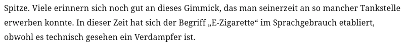 Korrekter wäre also die Formulierung: „In dieser Zeit hat sich der Begriff „E-Zigarette“ im Sprachgebrauch etabliert, obwohl es technisch gesehen ein Zerstäuber ist, der umgangssprachlich auch als Verdampfer bezeichnet wird.„