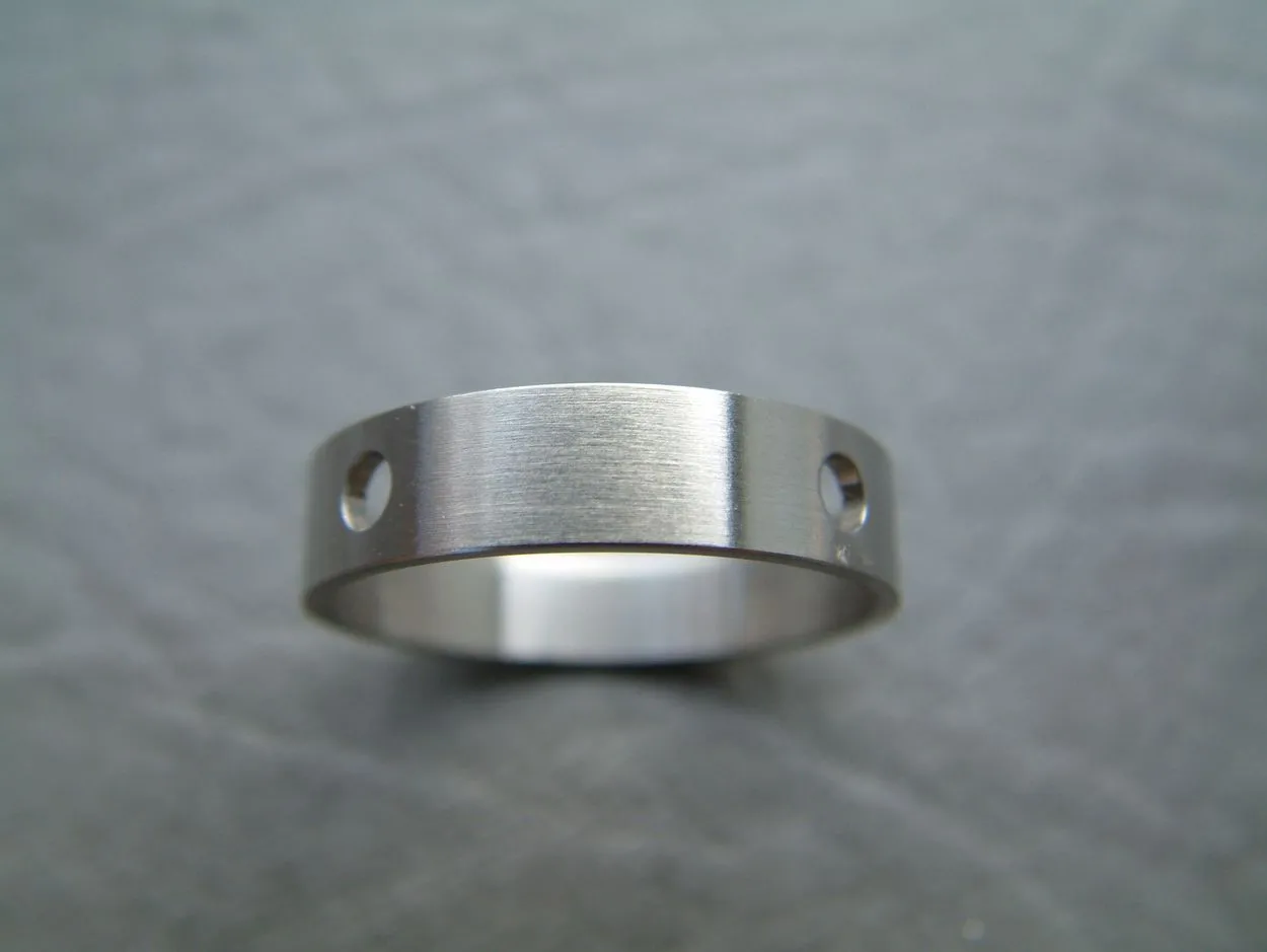 Die eigentliche Verdampferkammer besteht wieder aus Edelstahl und weist ebenfalls diverse Bohrungen für die Airflow auf… insgesamt zehn. Jeweils in zweifacher Ausführung sind Bohrungen mit 1.2 mm, 1.5 mm, 2.0 mm und 2.5 mm vorhanden, die mit dem AFC-Ring entweder für Dualcoil auch zweifach geöffnet sind, oder für Singlecoil nur einfach. Zusätzlich ist ausschließlich für den Singlecoil-Betrieb ein gestacktes (übereinander ausgeführtes) Doppelloch mit 2 x 1.2 mm vorhanden.