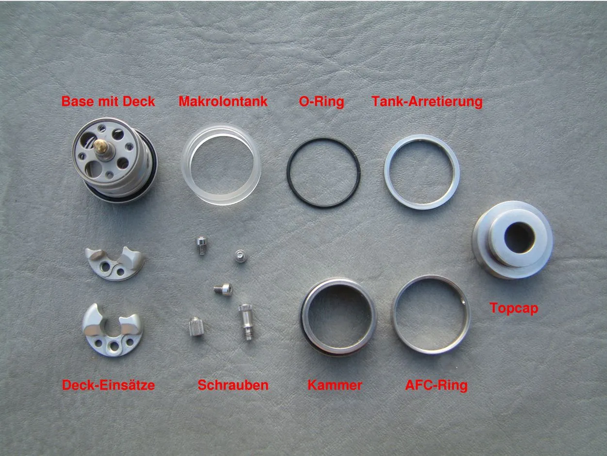 Der Verdampfer wurde in einem absolut perfekt gereinigtem Zustand geliefert. Im Lieferumfang sind ein Inbus-Schlüssel für die Schrauben, ein Satz Ersatz-O-Ringe und die beiden Verdampferkammer-Einsätze vorhanden. Er wird ohne Driptip verkauft.