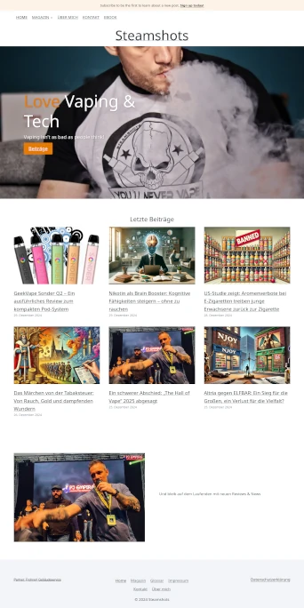 Der schriftliche Blog erlaubt mir auch, Themen aufzugreifen, die als Video vielleicht nicht so gut ankommen würden, und das erfüllt mich gerade sehr. Außerdem möchte ich die Lücke schließen, die entstanden ist, weil viele Formate aufgehört haben. Irgendwie kann ich nicht aufhören – das Thema Dampfen ist mir einfach zu wichtig.