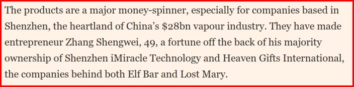 Heavengifts gehören die Marken Elfbar, Lost Mary, Found Mary, Geekbar, Geekvape und weitere Marken. Der größte Anteilseigner ist zugleich auch der Geschäftsführer Shengwai Zhang.