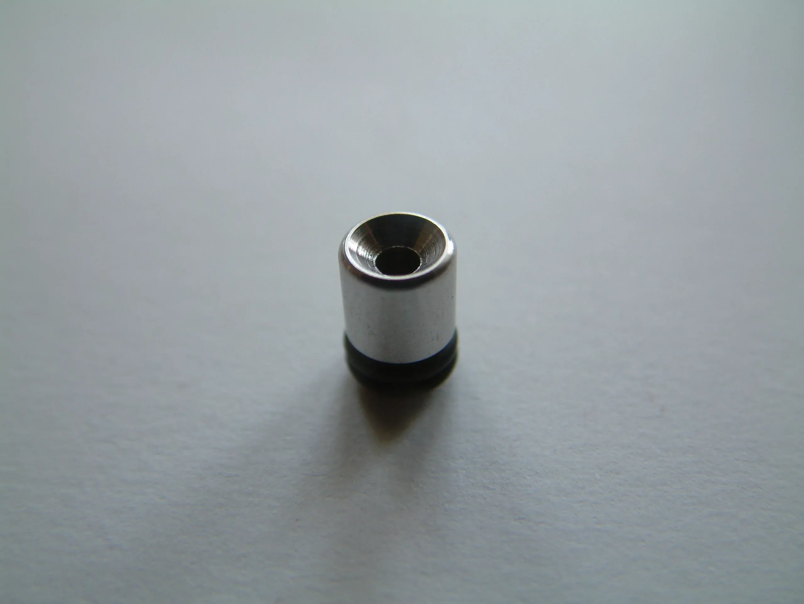 Zunächst mal die nackten Zahlen und Fakten! Die Eviva ist ein recht kompakter Verdampfer mit einem Durchmesser von 23 mm. Damit passt sie wie angegossen z. B. Auf einen Chi You, den sie bei mir schmückte. Auf den Atermon passt sie natürlich noch besser, so man die 23mm-Version sein Eigen nennt. Die Höhe ohne Drip Tip und 510er Anschluss beträgt 36,5 mm (gemessen knapp 37 mm). Sie besteht aus lebensmittelzugelassenem AISI 304L Edelstahl. Der flächige Isolator in der Base ist aus PEEK (Ketron®), einem sehr hitzebeständigen Kunststoff. Zur Fixierung der Wicklung, bzw. zur Lenkung des Zuluft-Stroms, dient entweder die klassische CE2 Keramik, oder ein kleiner Zylinder aus Edelstahl (ES-Housing; die Wicklung wird dann schwebend darüber angebracht und er dient nur dazu, die Zuluft zu kanalisieren). Diese werden in die Base gesteckt und von zwei kleinen O-Ringen gehalten. Der Einsatz der Keramik legt zunächst die Vermutung nahe, man müsse die Eviva mit Kombidrähten betreiben. Dem ist aber nicht so. Die Befestigung des Heizdrahtes erfolgt über zwei Terminals in der Base, die mit Inbus-Schrauben versehen sind.