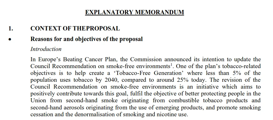 Der Vorschlag für eine überarbeitete Empfehlung des Rates zielt außerdem darauf ab, indirekt die Denormalisierung des Konsums von Tabak und neuen Produkten zu unterstützen und auf diese Weise zum Ziel einer tabakfreien Generation beizutragen.