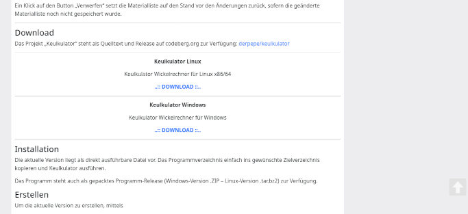 In der rechten Seitenleiste gibt es Verweise zum Impressum, zur Datenschutzerklärung, zum Kontaktformular und zu den Downloads.