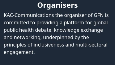 Dazu ein paar Hintergründe: Das GFN ist eine Veranstaltung, die von der Knowledge Action Change Limited (KAC) organisiert wird. Die KAC wiederum wird von der Foundation for a Smoke-Free World (FSFW) finanziert, die ausschließlich(!) von Philip Morris International (PMI) finanziert wird. Der Leiter, Professor Gerry Stimson, zeigte in der Vergangenheit bei seinen Projekten auch keine Berührungsängste mit Big-T (BAT).