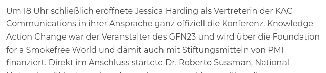 Die erste Aussage ist sicherlch unstrittig. Es wird da in erster Linie über THR gesprochen… die Veranstaltung dreht sich um genau dieses Thema. Und die überwiegende Zahl der Teilnehmer, Redner etc. haben sicherlich auch nix mit der Tabakindustrie am Hut.