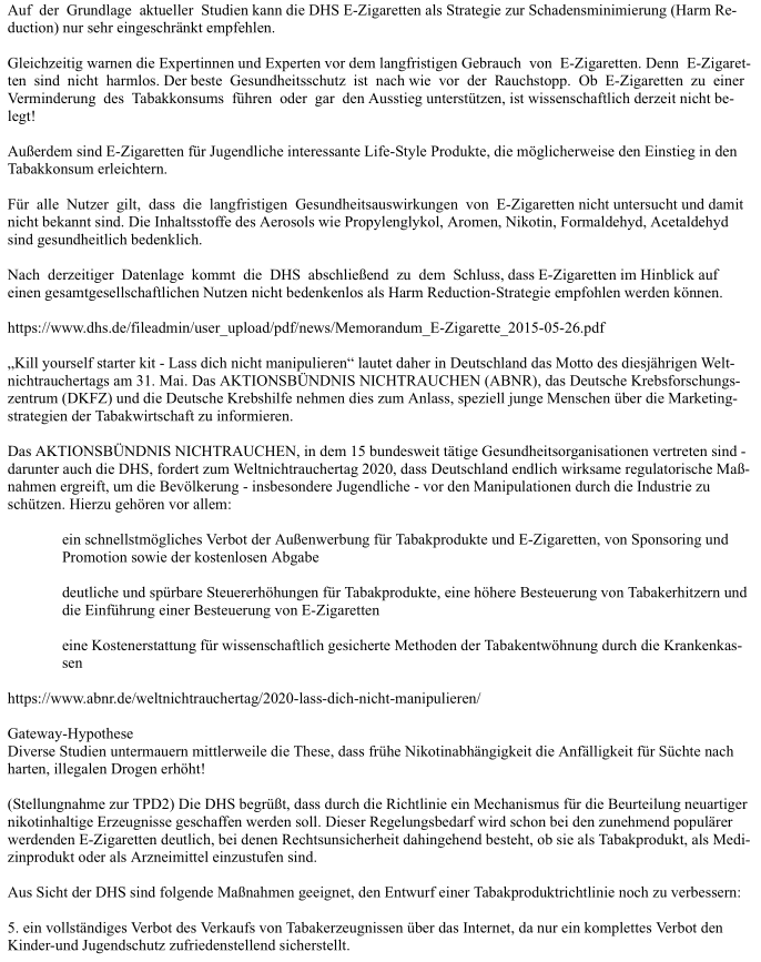 Die DHS ist Mitglied beim ABNR, DEM ANTZ-Bündnis, dass sich unter der Leitung von Monika der Bekämpfung des E-Dampfens verschrieben hat und die widerwärtige Propagandaaktion anlässlich des Weltnichtrauchertages 2020 ins Leben gerufen hat…