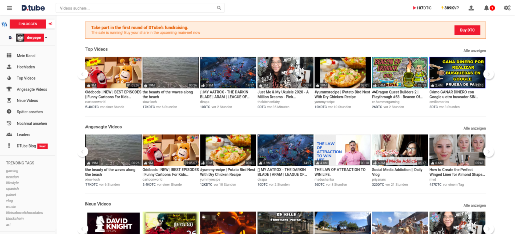 Nicht unerwähnt lassen möchte ich eine weitere Alternative, die nicht Teil von „The Federation“ ist, aber auch unabhängig und vor allem zensurresistent: Steemit/DTube.