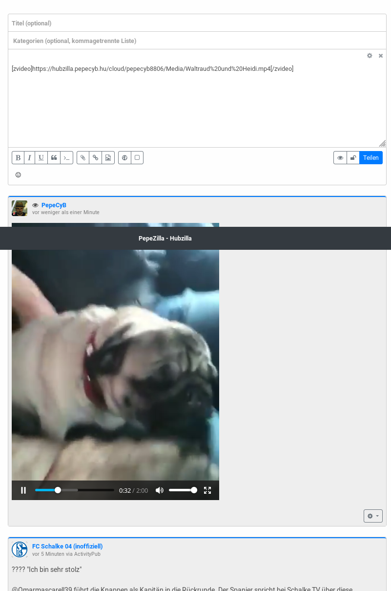 Ich werde in den nächsten Wochen in meinem anderen Blog, PepeCyB‘s Welt, ein paar Tutorials anbieten, wo z.B. beschrieben ist, wie man bei Hubzilla seinen eigenen Video-Kanal anbieten kann.