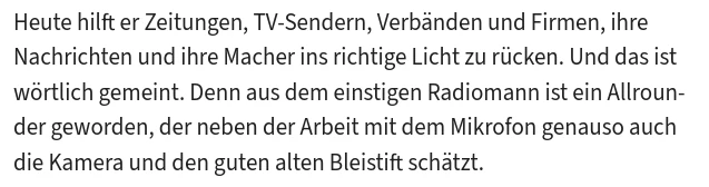 Wohlwollend kann man sagen, ohne sie wäre das BfTG nichts in Sachen Öffentlichkeitsarbeit. Die Presse Platzierungen kommen auch von Jahrzehntelangen gepflegten Kontakten im Journalismusgewerbe. Es hat Jahre gedauert bis er es mal gepackt hat bei den öffentlich Rechtlichen selbst was zu platzieren, nämlich den Dark Burner Fang. Seit dem Einweg Teile Geld und dem jahrelangen Einzahlen beginnt er jetzt so sein Adressbuch zu versilbern.