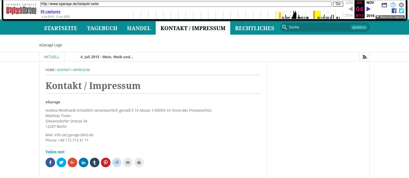 Und tatsächlich, schaut man auf der Webseite der Garage ins Impressum (arch), wird als ViSdP besagte Frau Winkhardt aufgeführt.
