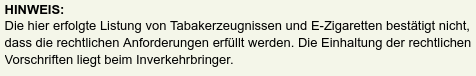 Ja genau… DAS zeigt, dass die Wartefrist von sechs Monaten VOLLKOMMEN sinnfrei und willkürlich ist und keinem anderen Zweck dient, als den E-Dampfgeräte-Handel zu gängeln (Tabakprodukte müssen keine Wartefrist einhalten).