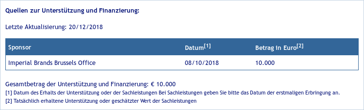 Nicht Imperial Brands hat das Geld gegeben, sondern der, der nomalerweise für Imperial Brands Lobbyarbeit leistet, der ist auch so in Transparenzregistern.