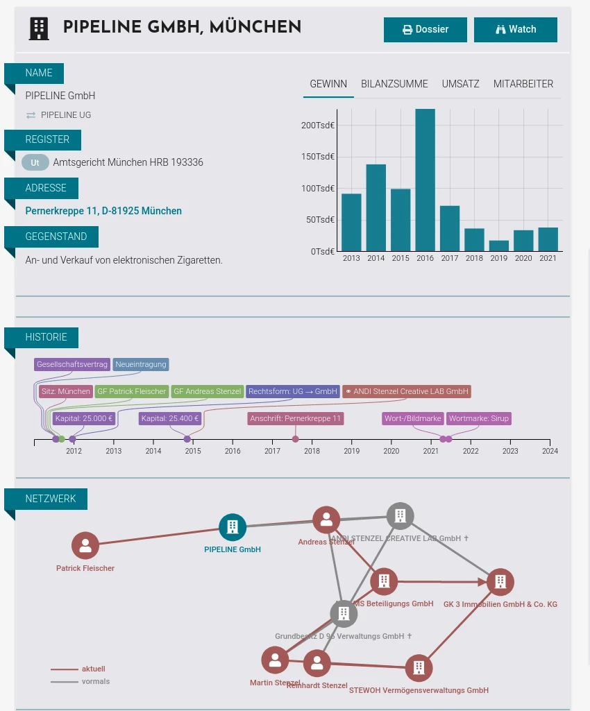 Pipeline wurde am 03.08.2011 gegründet. Geschäftsführer sind Patrick Fleischer und Andreas Stenzel.