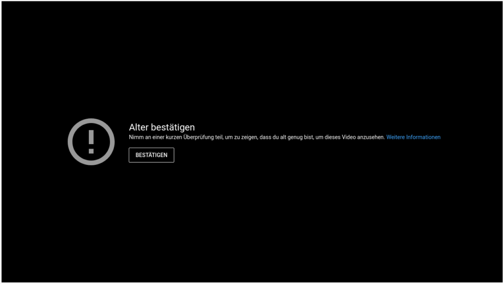 Und… Altersbeschränkung… vom „Uploader“ so festgelegt… Alter bestätigen.
